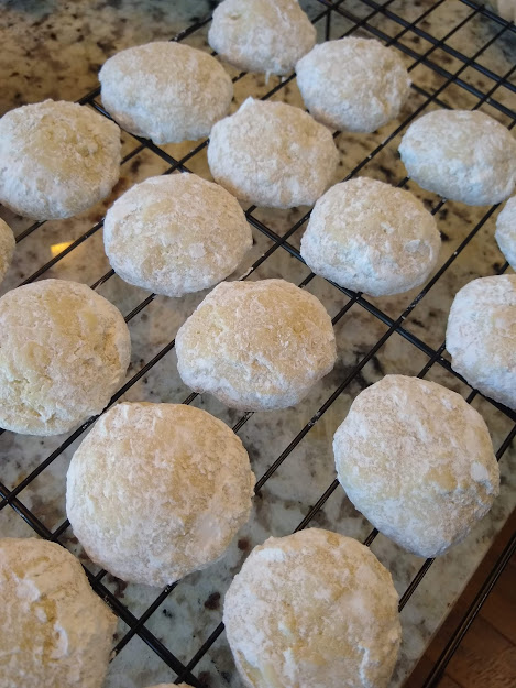 8. While cookies are still warm, roll in powdered sugar mixture.